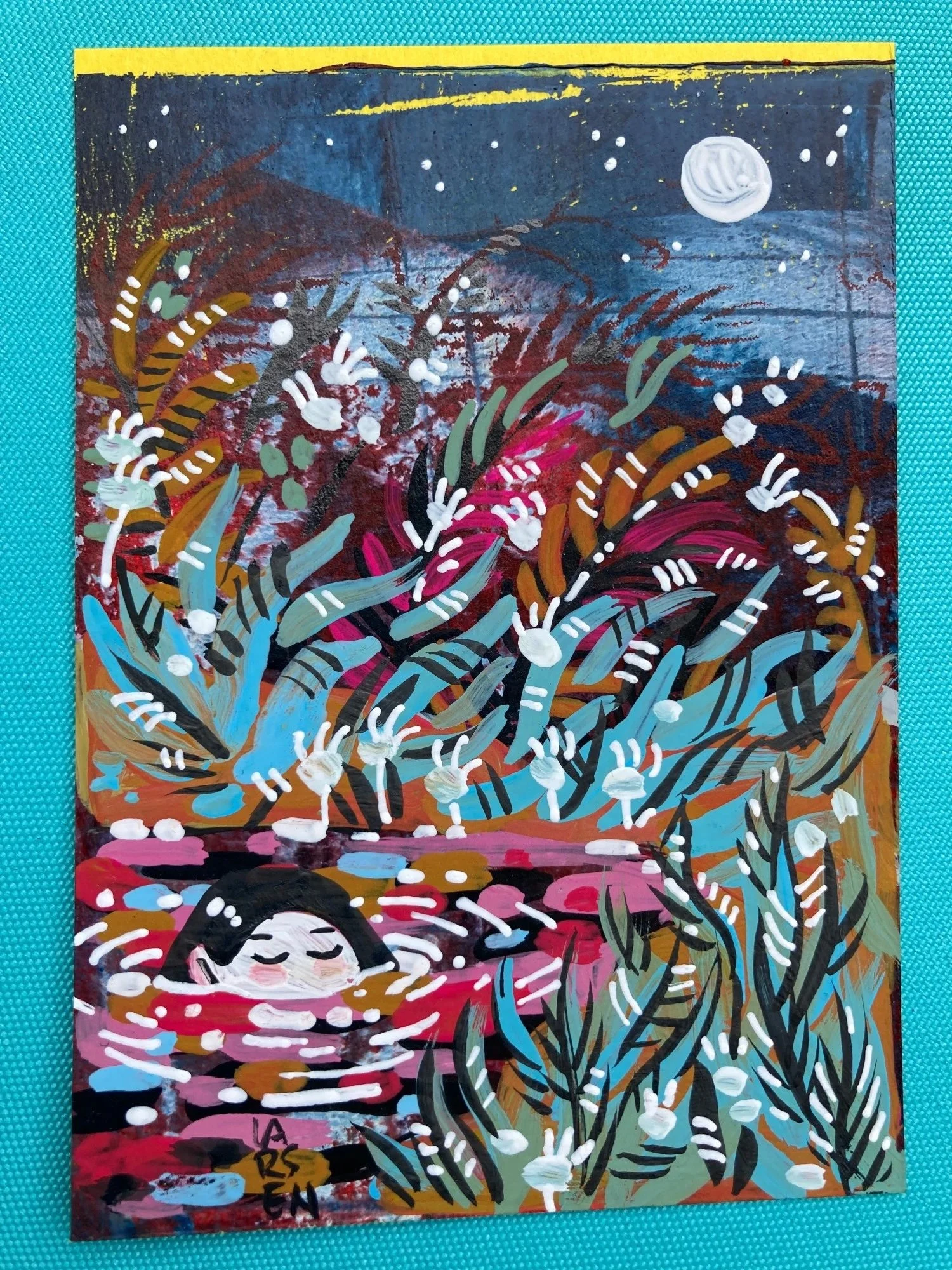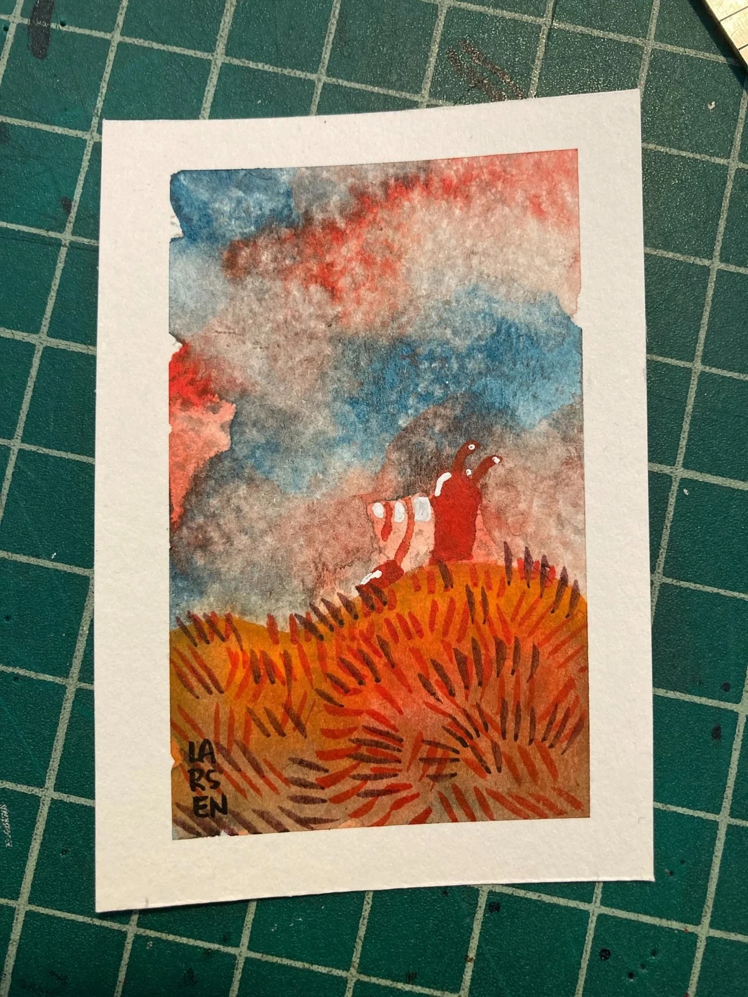 Below you will find examples of previous cards and tiny paintings that share the spirit of what you might recieve for a donation. But keep in mind, there are many talented artists participating in this ongoing donation drive. You’re not just limited to me!